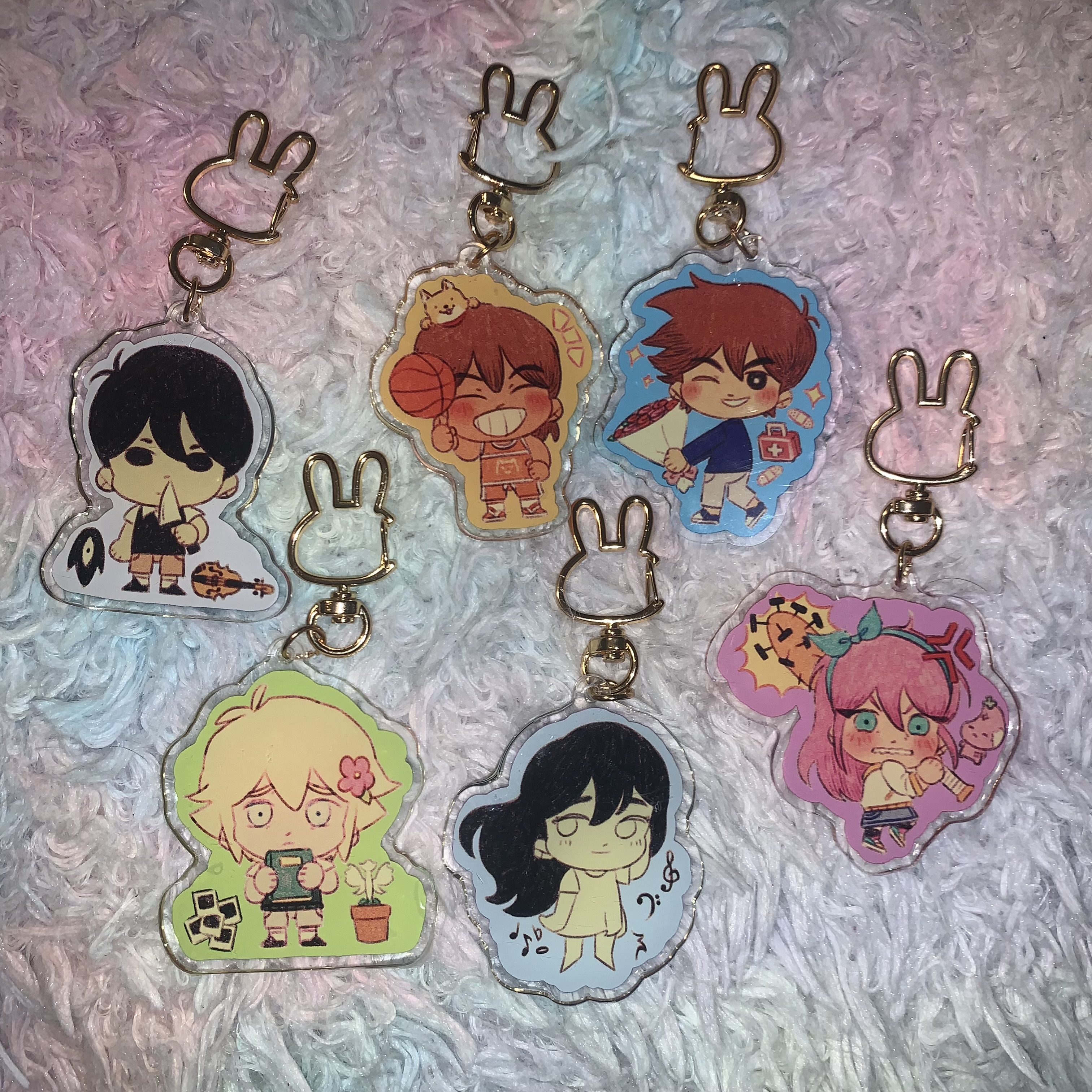 - colored acrylic charm with clear outline - double-sided different design (front is headspace, back is real world) - bunny accessory - 2.5 inches *FULL KEYCHAIN SET IS LIMITED!*